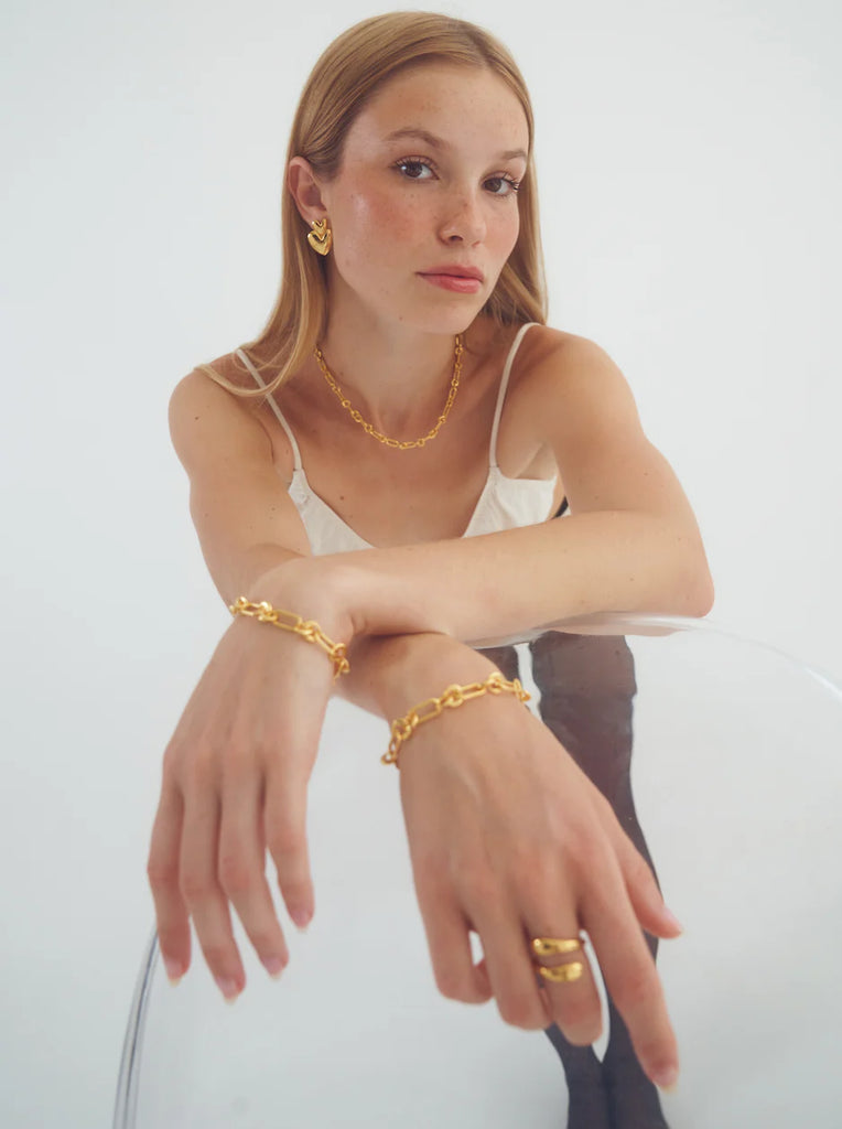 The Serafina Bracelet Gold is a larger link and ring style chain, perfect for layering or wearing on its own.