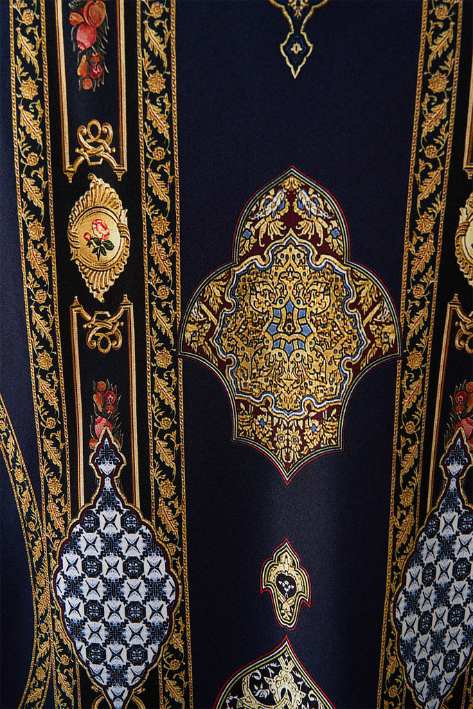 The The Imperial Gate High Neck Bias Dress is a handcrafted silk silhouette designed by our in house artisans. Reimagined in an exclusive limited edition print, our high neck dress is bias cut to gently trace the contours of the body and falls into a sweeping full length hem. A daring open back is adorned with statement chain detail, while delicate back buttons offer styling versatility, an ode to drama and the art of allure.