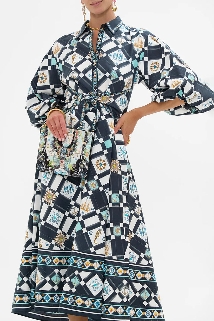 Designed in Australia, The Folk Afloat Small Canvas Clutch sings of Portugal’s coastal dreams—intricate patterns and soft hues drift through a decadent world of wonder and whimsy. Lovingly handcrafted, this CAMILLA clutch bag showcases a streamlined rectangle silhouette adorned with contrast piped edges, a zip top enclosure and finished with a custom made parrot clip. The internal pocket and generous main compartment keep your treasures stored in style.