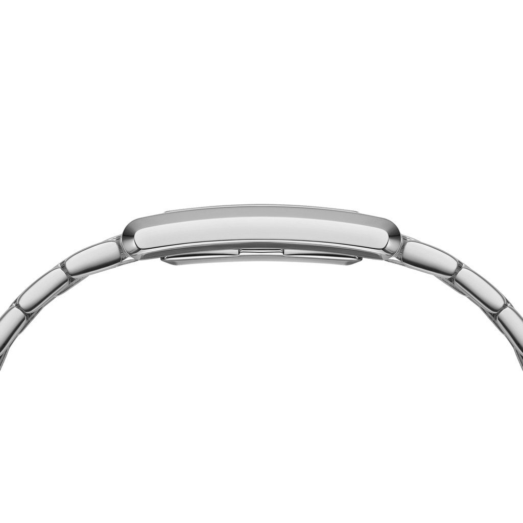 Discover the refined elegance of the Bound 9-Link Silver, a sophisticated rectangular watch designed for women who appreciate timeless style and modern versatility. This elegant women's watch features a sleek, curved rectangular case crafted from high-quality 316L stainless steel, seamlessly paired with a beautifully polished 9-link silver strap. The minimalist white dial, framed by geometric edges, offers a classic and understated look that complements both casual and formal attire.