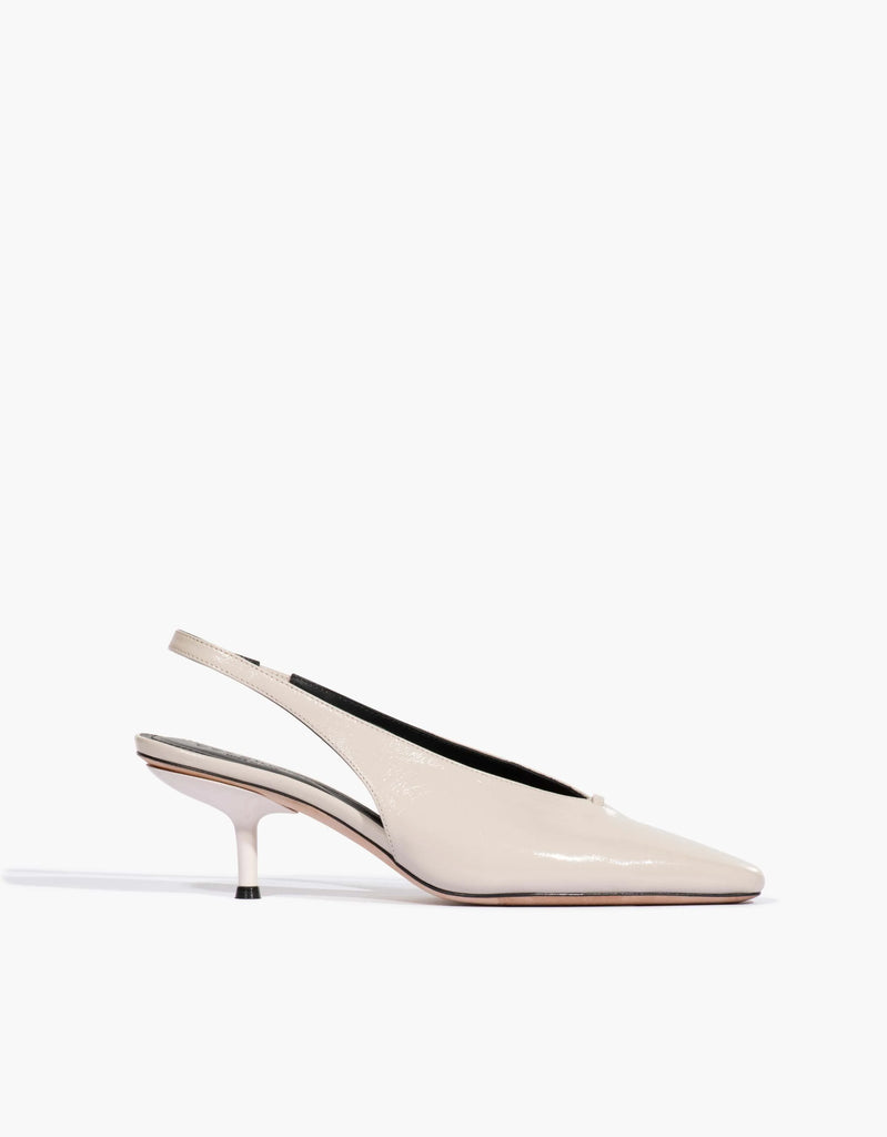 The Lulu Slingback Heel offers a modern take on a timeless silhouette featuring a slingback strap and middle stitch detail. Crafted with a high gloss finish, Lulu is a sophisticated silhouette that perfectly transitions from desk to dinner.