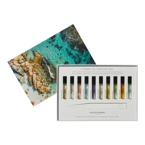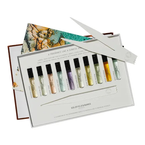 Host your very own Goldfield & Banks Perfume Expert Class with our luxury Discovery Sample Collection. Enchant your senses and spoil yourself or your friends with 10 x 2ml perfume sprays, spray cards and an instructional compendium.