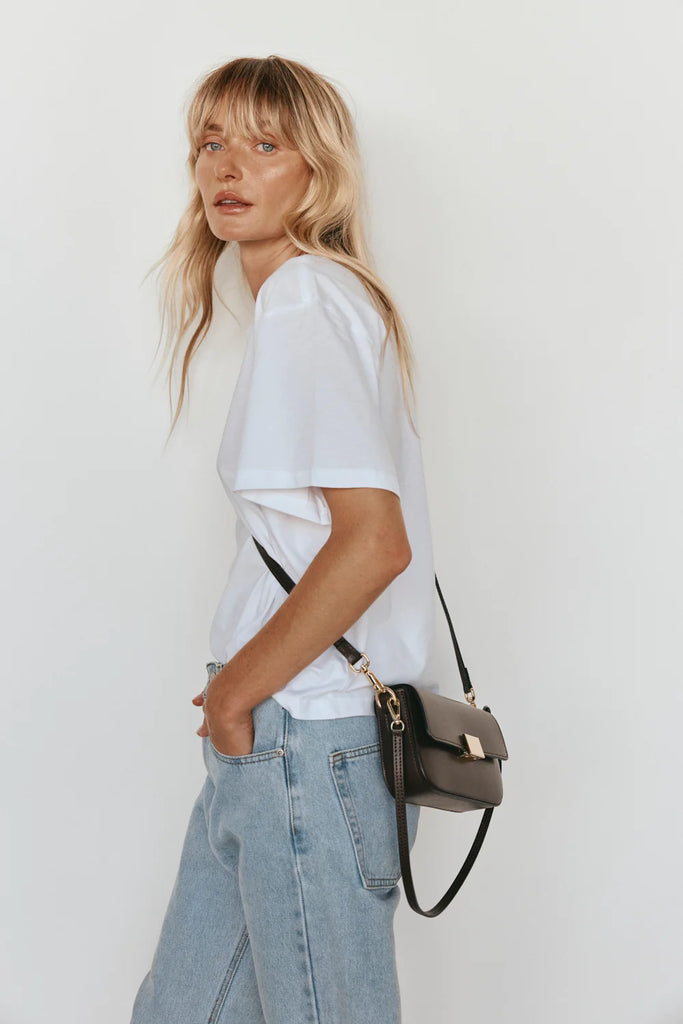 Enjoy refined versatility with two removable strap options. Carry Isla as a chic shoulder bag with the elongated leather strap, effortlessly convert it to a crossbody with the longer leather strap, or embrace its minimalist beauty as an elevated clutch.