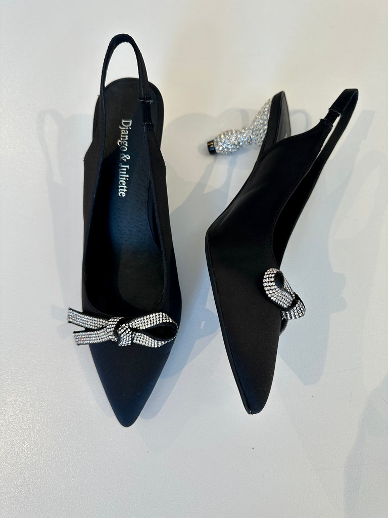 These black satin kitten heel will elegant outfits with a touch of sparkle. EVITTA is a chic design from Django & Juliette that makes night wear look fabulous.