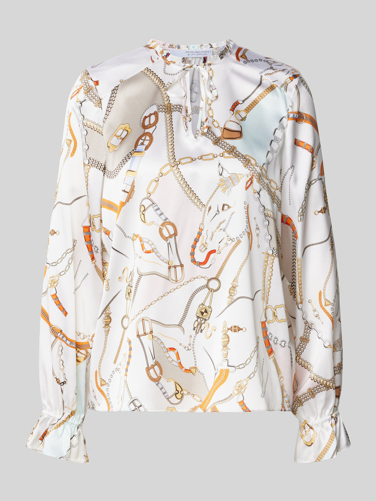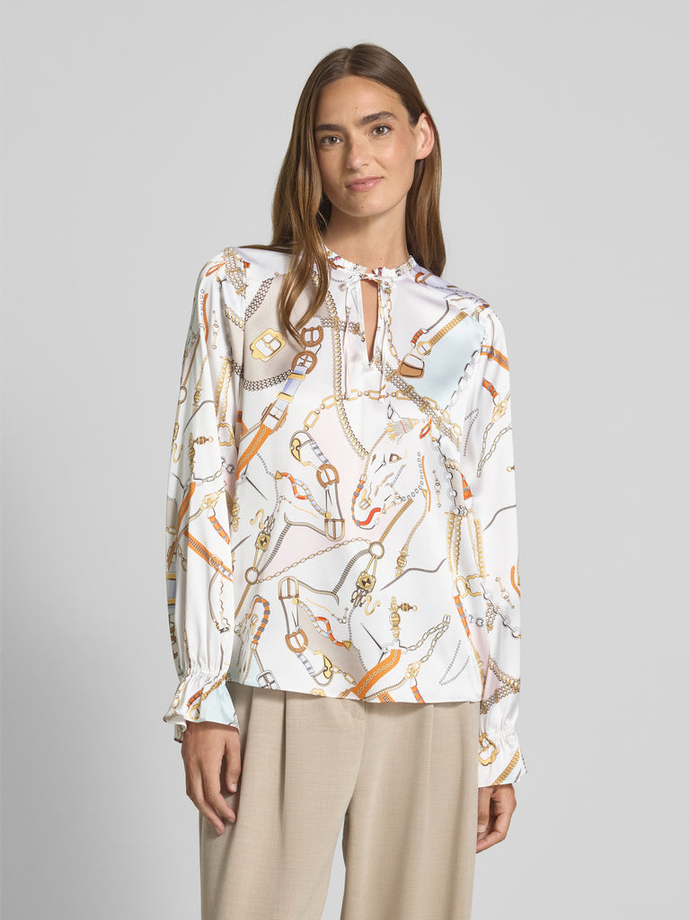 The matter of the heart silk blouse combines elegance and comfort through its silk mix with stretch. The regular fit and the stand-up collar with ruffle trim ensure an attractive fit, while smoffed sleeves with flounce finish stylishly round off the long-sleeved design. The keyhole cutout with bow offers a subtle detail.