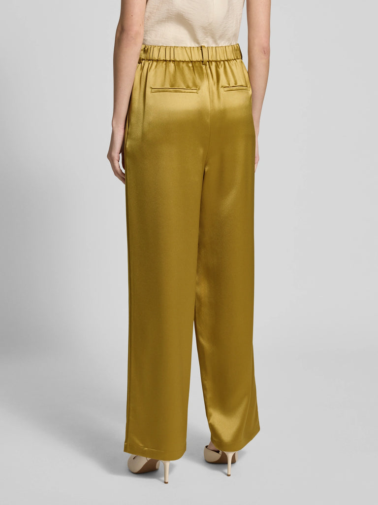 The women's trousers from Herzens combine an elegant cut with a wide leg and cleverly laid folds. The material mix with viscose content ensures a pleasant wearing comfort, while the practical back pockets offer additional comfort. Ideal for stylish and comfortable outfits.