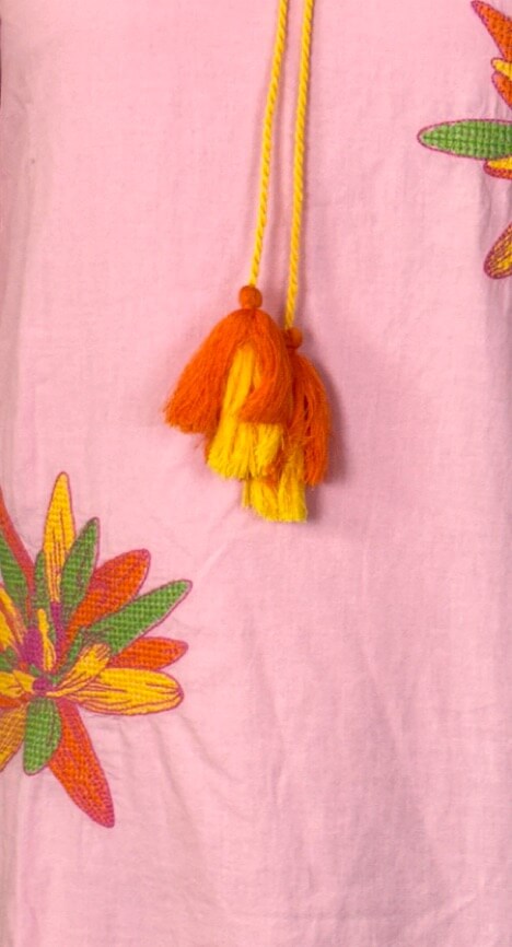 A cotton maxi-length resort-style dress by Dutch fashion label Place du Soleil is a must-have for Summer or your next holiday. Made from a lightweight and breathable 100% cotton it has a flattering A-line silhouette and features a playful cockatoo and floral embroidered print along with tassel detail.