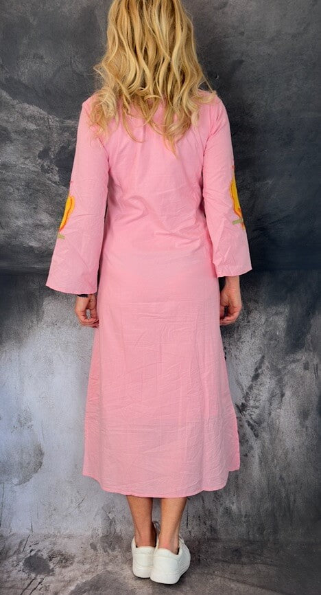 Maxi dress in vibrant pinks, greens, oranges & yellows