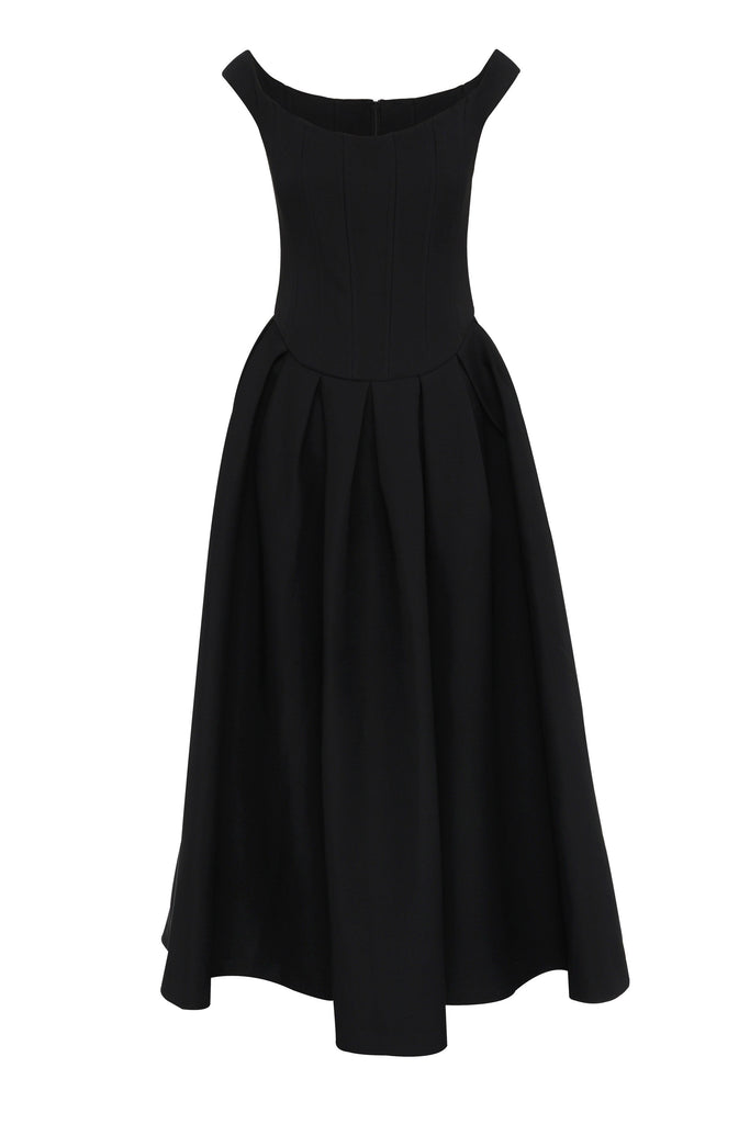 Embrace modern femininity with the Adoration Maxi Dress in Black. Inspired by classic corsetry, this striking silhouette features an off-shoulder neckline and a fitted, boned bodice that flows into a full-length A-line skirt. Designed with a pleated waistline, functional side pockets, and an exposed centre-back zip, it offers both structure and ease. Flattering on all body types, this timeless style is an elegant staple that will remain a wardrobe favourite for seasons to come.