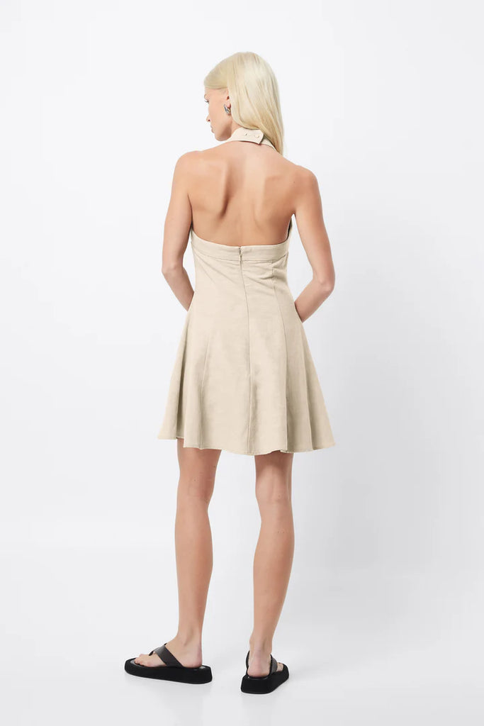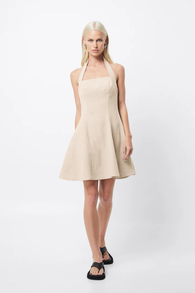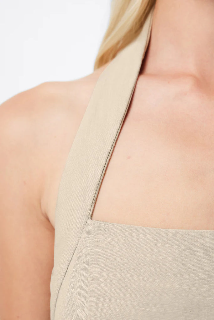 The Common Ground Mini Dress in Natural, is set to become a key piece in your summer wardrobe. Made from a soft, breathable linen blend fabrication, this dress features a halter neckline and a fitted torso that transforms into an A-line mini skirt. Wear with a simple flat slide for daytime ease, or a kitten heels for beachside cocktails