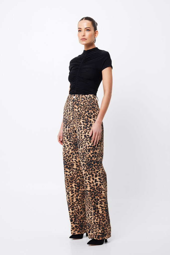 - Leopard print rigid denim