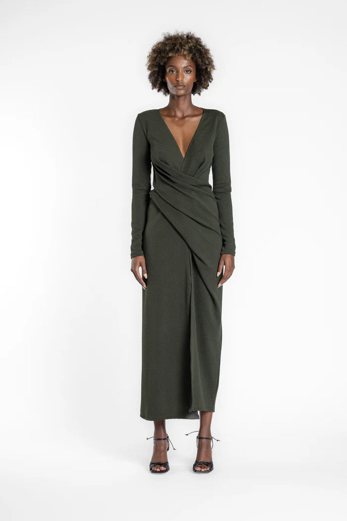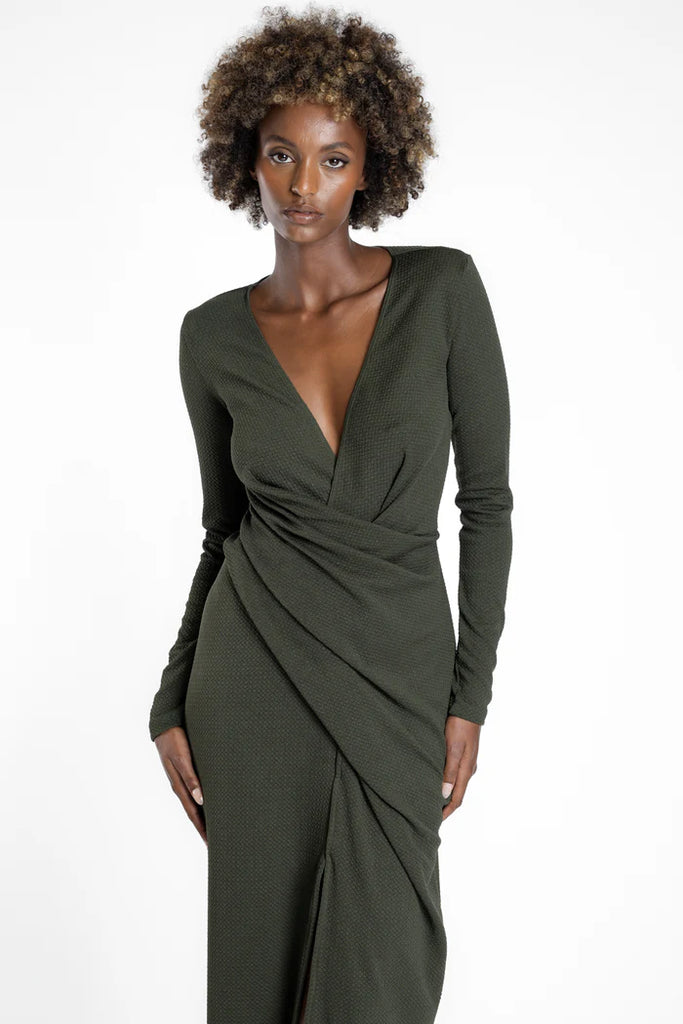 Indulge in luxurious comfort in the Darcy Stretch. Designed with a captivating wrap style centre, this long sleeve knit dress is the perfect piece to take from desk to dinner.