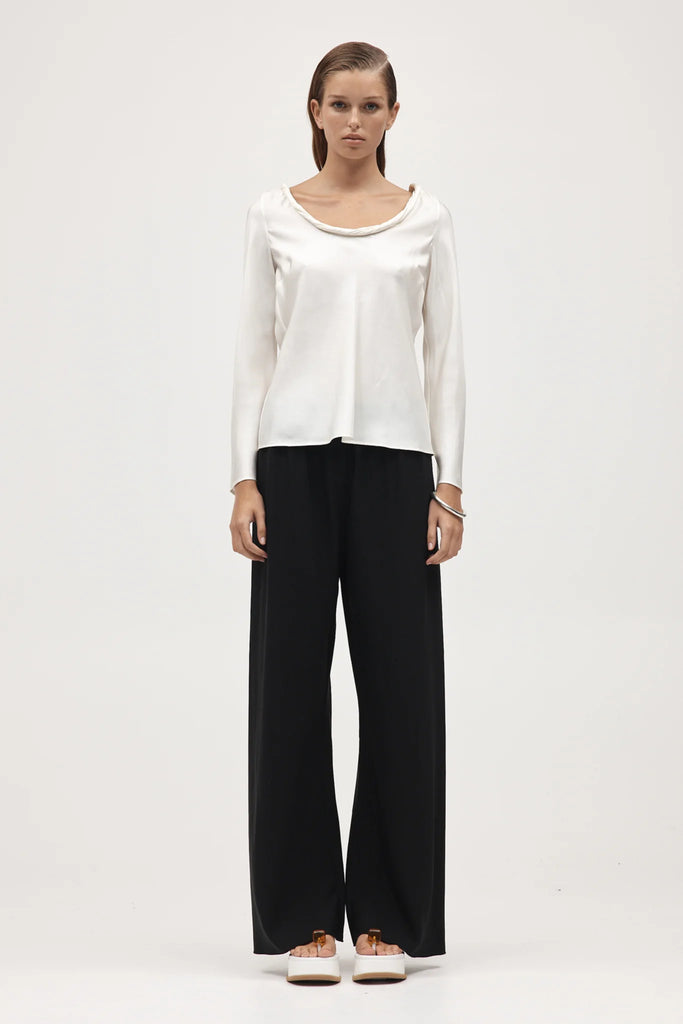 The Coco Pant are a full-length pant. They sit on a flat elasticated waistband are cut on the bias which gives a beautiful silhouette through the leg. This version of the Coco Pant are crafted in a tencel / linen cloth.
