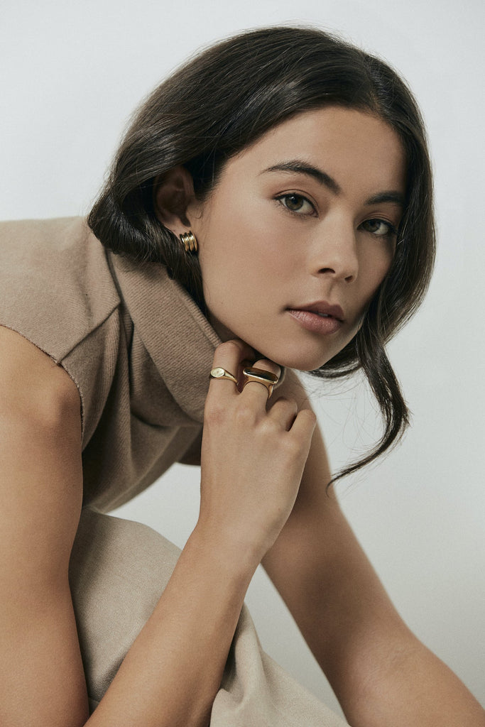 SILK & STEEL - Guiding Star Signet Ring WHITE TOPAZ/GOLD