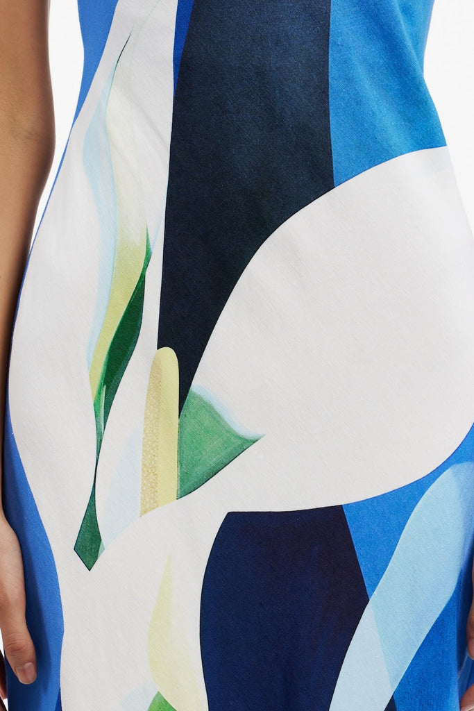 Bold yet refined, the Mora Strapless Dress in Calla Lily is a statement silhouette designed for summer occasions. Featuring a striking floral placement print across the front and a clean satin back, this strapless style is structured with a boned underbodice for shape and support. Finished with a centre-back invisible zip, it's a standout option for day-to-evening dressing.