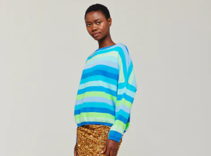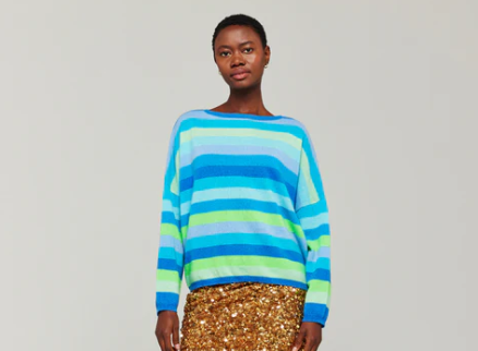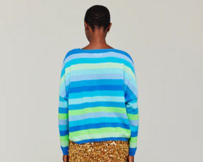 BRODIE CASHMERE - Doris Stripe Crew Knit SAILOR BLUE