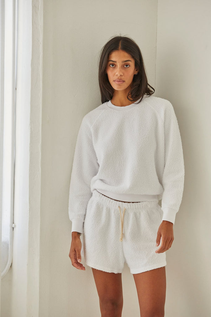 consider this your new favorite layer. the sami sweatshirt is made in a fresh summer boucle, giving it that perfectly textured, laid-back feel. designed with a raglan sleeve for extra ease and looped inside out like our beloved ziggy sweatshirt—think of it as the ziggy part duex.