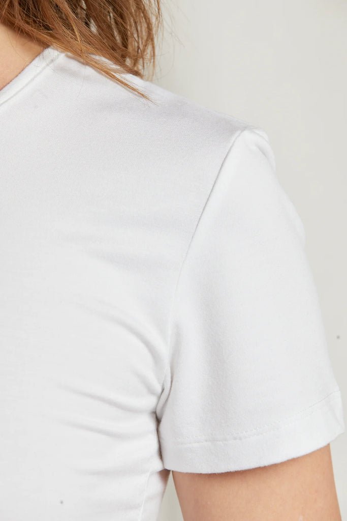 if you’re looking for your next tee, this is it. cut from our luxe 90s jersey, this form fitting tee hugs where you need it. consider it a second skin while still allowing movement and comfort.