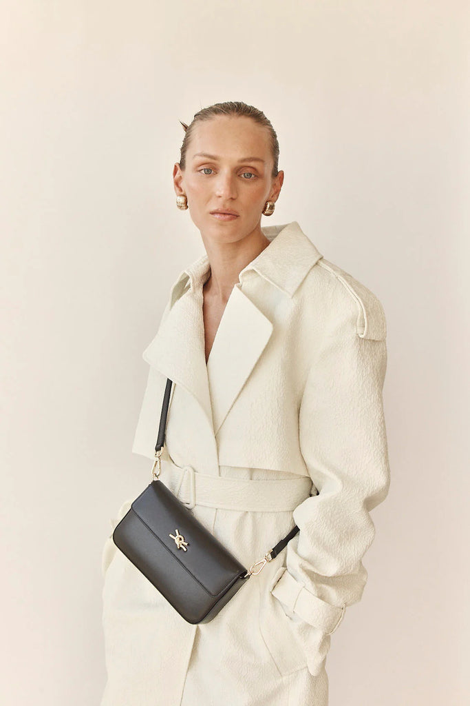 Crafted with our premium smooth Italian leather, the Sophie Knot Pouchette bag features a VESTIRSI custom gold knot detail, internal card holder space and internal zip compartment.