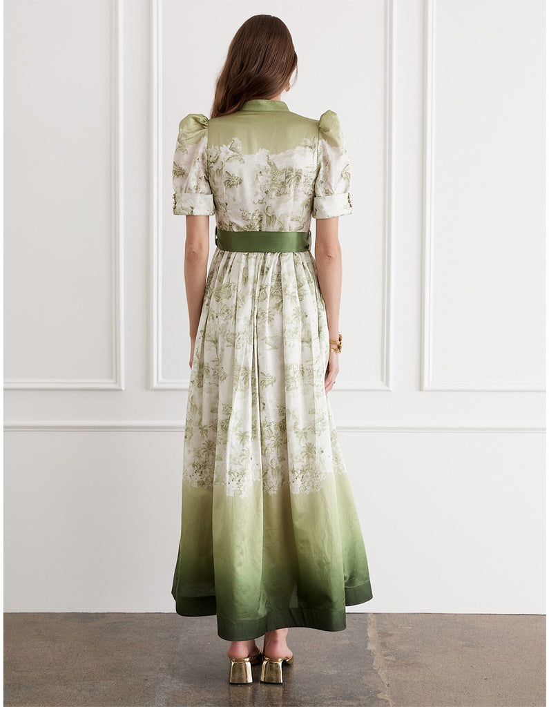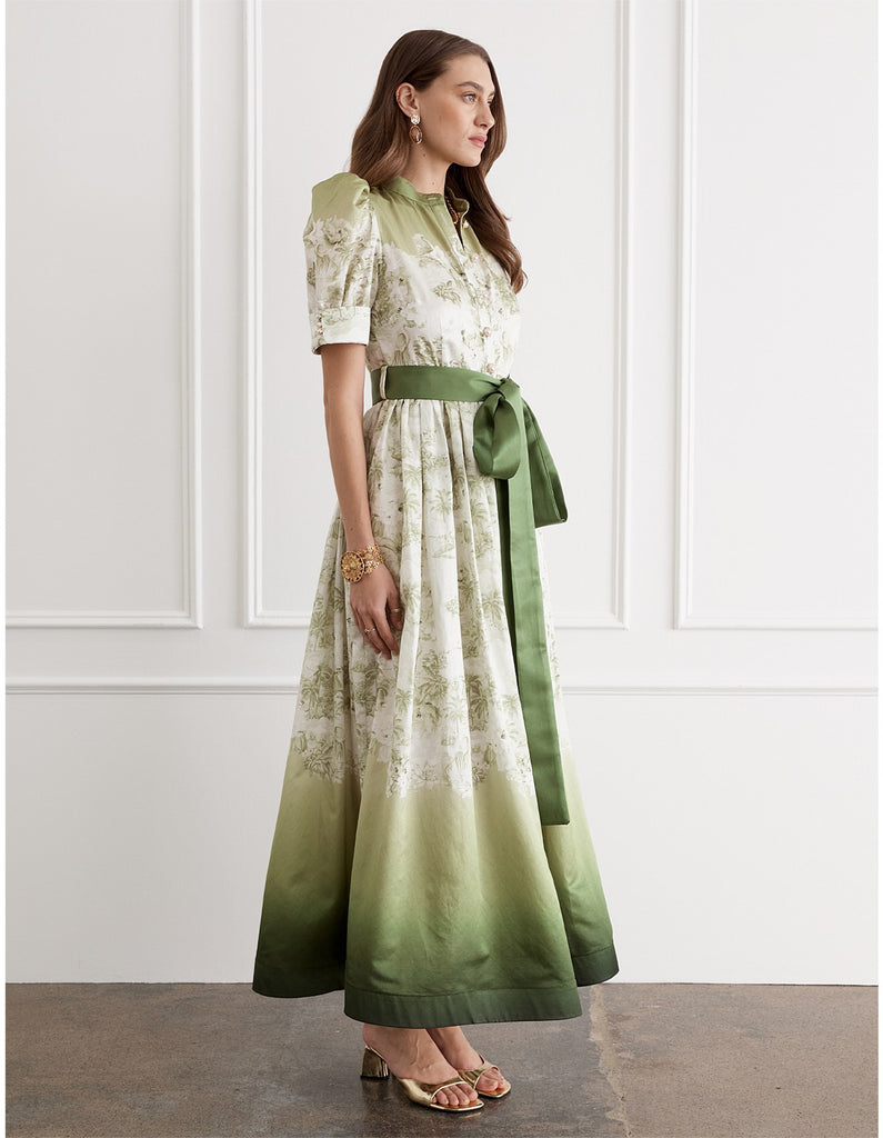 The Rosalie Dress embodies a modern twist on a classic silhouette. Woven from the strength of Cotton and the decadent fluidity of Mulberry Silk, allowing it to hold both structure and softness. A bold cascading skirt is met with the delicate detailing of custom luminescent pearl buttons - combining both function and flare.