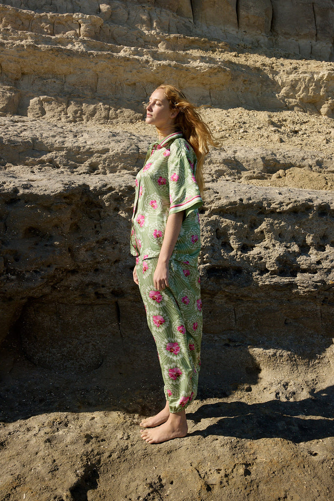The Ophelia Pant Meadow Phalae features our exclusive Phalae hand-crafted print, bringing a touch of elegance to everyday wear. Designed with a flattering silhouette and premium silk viscose blend, these printed pants are perfect for casual days, office styling, or dressing up for events. Pair with a simple top or the Beni Shirt for a coordinated, statement outfit.