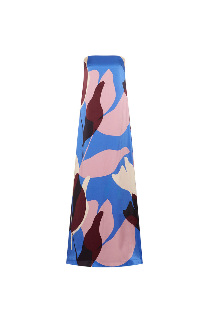 The Mika Maxi Dress seamlessly blends timeless style with a playful abstract print, tailored from silk. Highlighting a feminine strapless neckline, the slip silhouette offers a flattering fit, supported with an internal bra for utmost comfort. Chic side darts accentuate the refined maxi column shape, while an invisible zip fastening at the back ensures a seamless finish. Complete with lining, this dress is a must-have and perfect for your next event.