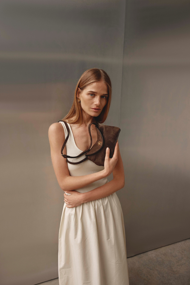 VESTIRSI - Sloane Mini X-Body Suede Clutch CHOCOLATE