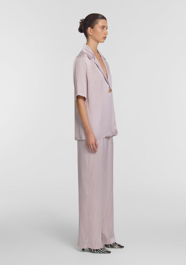The Pilot Pant returns in our signature cupro blend in a muted lilac hue. Loosely tailored with an elasticized waist and wide-leg silhouette, creating an elongated profile. Complete the look with the Concert Shirt for a look that exudes effortless luxury, or pair with this season's lilac hues for chic tonal styling
